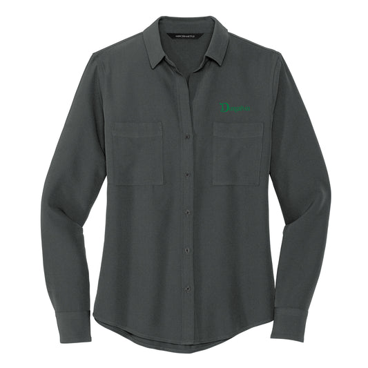 Ladies Stretch Crepe Long Sleeve Camp Blouse